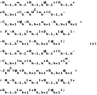 Динамические характеристики заготовки с учетом влияния шпиндельного узла и задней бабки записываются в виде (см. Санкин Ю.Н. Динамические характеристики вязко-упругих систем с распределенными параметрами. Саратов: Изд-во Сарат. ун-та, 1977, 309 с.):![]() где Ajk=ijkajk; Bjk=ijkbjk; ![]() ![]() ![]() ![]() ![]() ![]() ![]() ![]() bjk = (sh jk-sin jk) jktjk;cjk = (sh jksin jk) 2jktjk;![]() ![]() hjk = (sin jk+sh jk) 3jktjk;![]() ![]() jk – диаметр заготовки.