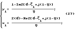 Функция профиля такого волноводного акустического трансформатора может быть задана, например, в виде множества на комплексной плоскости z(x,y):![]() где Z( )- функция конформного отображения комплексной области прямоугольника ( , ) на область полупрофиля ступенчатого трансформатора z(x,y); – параметр на конформном инварианте ( , ), задающий положение узла смещений; – параметр на конформном инварианте ( , ), задающий ординату эквилинии потока поля волнового вектора.