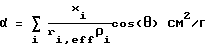 1 = перемещающийся контактный угол жидкость-твердое тело (градусы) для компонента I;