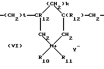 Масла, которые можно использовать для осуществления предлагаемого изобретения, предпочтительно выбирают из следующей группы:масла растительного и животного происхождения, образованные эфирами жирных кислот и многоатомных спиртов, в частности жидкими триглицеридами, например, в виде подсолнечного масла, кукурузного масла, соевого масла, масла авокадо, масла жожоба, тыквенного масла, масла из зернышек винограда, кунжутного масла, масла лесного ореха, рыбьего жира, трикапрокаприлата глицерина, а также в форме растительных или животных жиров формулы R9COOR10, в которой R9 обозначает остаток высшей жирной C7-29 кислоты, a R10 обозначает С3-30 углеводородную цепь, линейную или разветвленную, в алкил или алкенил, которые представлены в масле Пюрселлена и в жидком воске жожоба, натуральные или синтетические эфирные масла, такие как, например, эвкалиптовое масло, лавандовое масло, лавандиновое масло, масла растения “бородач” (vetivier), масла растения Litsea cubeb, лимонного масла, сандалового масла, розмаринового масла, ромашкового масла, масла садового чабера, масла мускатного ореха, коричного масла, масла иссопа, тминного масла, апельсинового масла, масла герани, масла красного можжевельника и масла бергамота, углеводороды, такие как гексадекан и парафиновое масло, эфиры минеральной кислоты и спирта. Кондиционирующие агенты типа катионных полимеров, пригодные для использования в рамках предлагаемого изобретения, могут быть выбраны среди всех тех, которые уже сами по себе известны в предыдущем уровне техники и которые предназначены для улучшения косметических свойств волос, обработанных моющими композициями, в частности, описанных в заявке ЕР-А-0337354 и в заявках FR-A-2270846, 2383660, 2598611, 2470596 и 2219863. В более общем плане согласно изобретению термин “катионный полимер” обозначает любой полимер, содержащий катионные группы и/или группы, которые, могут быть ионизированы в катионные группы. Предпочтительными катионными полимерами являются такие, которые выбраны из числа полимеров, содержащих звенья, включающие в себя первичные, вторичные, третичные и/или четвертичные аминогруппы, которые могут либо являться частью основной цепи полимера, либо могут быть прикреплены к боковому заместителю, непосредственно связанному с этой основной цепью полимера. Катионные полимеры, используемые для осуществления целей настоящего изобретения, обычно имеют средний молекулярный вес от примерно 500 до 5 106, предпочтительно от примерно 103 до 3 106.