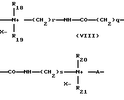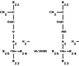 Из числа этих полимеров можно назвать следующие:1) Сополимеры винилпирролидон акрилата или метакрилата диалкиламиноалкила, контернированные или нет. Такие сополимеры выпускаются под названием ГАФКВАТ (например, ГАФКВАТ 734, 755 или Н 100 (производитель Ай-Эс-Пи) или продукт СОПОЛИМЕР 937. Эти полимеры подробно описаны в патентах FR 2077143 и FR 2393573. 2) Производные простых эфиров целлюлозы, содержащие группы четвертичного аммония и описанные в патенте FR 1492597. В частности, это полимеры, выпускаемые как продукты серии “JR” (JR 400, JR 125, JR 33М) или серии “LR” (LR 400, LR 30М) фирмой Юнион Карбайд Корпорейшн. В словаре CTFA эти полимеры определены как “четвертичные аммонии гидроксиэтилцеллюлозы, которые прореагировали с эпоксидом, замещенным с триметиламмониевой группой”. 3) Катионные производные целлюлозы, такие как сополимеры целлюлозы или производные целлюлозы, привитые водорастворимым мономером четвертичного аммония. Эти производные описаны в патенте США 4131576. К ним относятся гидроксиалкил целлюлозы, такие как гидроксиметил-, гидроксиэтил- или гидроксипропил целлюлозы, привитые к соли метакрилоилэтил триметиламмония, соли метакриламидопропил триметиламмония или соли диметил диаллиламмония. Этому определению, в частности, соответствуют продукты серии СЕЛЬКВАТ L 200 или серии СЕЛЬКВАТ Н 100 фирмы Нейшнл Старч. 4) Катионные полисахариды, описанные, в частности, в патентах США 3589578 и 4031307. Сюда относятся, например, гуаровые смолы, содержащие катионные группы триалкиламмония. Такие гуаровые смолы можно использовать в модифицированной форме, например, после модифицирования их солью (например, хлоридом) 2,3-эпоксипропил триметиламмония. Указанные продукты имеются на рынке и известны как продукты ЯГУАР С13, ЯГУАР С15, ЯГУАР С17 или ЯГУАР С162 (изготовитель – фирма МЕЙХОЛЛ). 5) Полимеры, состоящие из звеньев пиперазинила и двухвалентных алкиленовых или гидроксиалкиленовых радикалов, имеющих прямые или разветвленные цепи, возможно прерване атомами кислорода, серы азота или ароматическими или гетероциклическими циклами. Сюда же относятся продукты окисления и/или кватернизации этих полимеров. Эти полимеры описаны, в частности, в патентах FR 2162025 и 2280361. 6) Водорастворимые полиаминоамиды, полученные более конкретно посредством поликонденсации кислого соединения с полиамином. В таких соединениях можно создать ретикулированную (сетчатую) структуру с помощью добавок следующих соединений: эпигалогидрин, диэпоксид, диангидрид, ненасыщенный диангидрид, бис-ненасыщенное производное, бис-галогидрин, бис-азетидиний, бис-галоацилдиамин, бис-галогенид алкила или же олигомер, образующийся вследствие реакции между бифункциональным соединением, и реакционоспособным по отношению к бис-галогидрину, бис-азетидинию, бис-галоацилдиамину, бис-галогениду алкила, эпигалогидрину, диэпоксиду или бис-ненасыщенному производному. При этом ретикулирующий агент (т.е. агент, создающий сетчатую структуру) может быть использован в соотношении от 0,025 до 0,35 моль в расчете на одну аминогруппу полиаминоамида. Эти полиаминоамиды могут быть алкилированными и – если они содержат одну или несколько третичных аминовых функций – кватернированны. Эти полимеры описаны в патентах FR 2252840 и 2368508. 7) Производные полиаминоамидов, полученные в результате конденсации полиалкиленированных полиаминов 