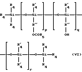 Из числа указанных модифицированных полиорганосилоксанов можно назвать следующие:группы полиэтиленокси и/или полипропиленокси, возможно содержащие С6-24 алкил и представляющие собой диметикон сополиол, выпускаемый как продукт ДС 1248 фирмой ДАУ КОРНИНГ. В эту же категорию входят масла серии СИЛЬВЕТ L 722, L 7500, L 77 и L 711 фирмы ЮНИОН КАРБАЙД и алкил-С12-метикон сополиол фирмы ДАУ КОРНИНГ (продукт Q 2 5200), замещенные или незамещенные аминированные группы, причем замещенные аминированные группы представляют собой C1-4 аминоалкильные группы. Соединения этой категории выпускаются фирмами ДЖЕНЕЗИ (продукты GP 4 и GP 7100 СИЛИКОН ФЛУИД) и ДАУ КОРНИНГ (продукты Q 2 8220, 929 и 939), тиоловые группы (продукты GP 72 А и GP 71 фирмы ДЖЕНЕЗИ), алкоксилированные группы (продукт СИЛИКОН СОПОЛИМЕР F-755 фирмы SWS фирмы СИЛИКОНЗ и продукты АБИЛЬ ВАКС 2428, 2434 и 2440 фирмы ГОЛЬДШМИДТ), гидроксилированные группы, такие как полиорганосилоксаны, имеющие гидроксиалкильную функцию и описанные в патенте FR-A-85 16334. Соединения этой категории имеют формулу (V) ![]() в которой радикалы R3, одинаковые или разные, обозначают метил или фенил, причем по меньшей мере 60 мол.% радикалов R3 обозначают метил. В этой формуле (V) радикал R’3 представляет собой двухвалентное углеводородное C2-18 алкиленовое звено, р является числом от 1 до 30 включительно и q является числом от 1 до 150 включительно, ацилоксиалкильные группы, такие как, например, полиорганосилоксаны, описанные в патенте США-А-4957732 и имеющие формулу (VI) ![]() в которой R4 обозначает метил, фенил, -OCOR5, гидроксил, причем один из радикалов R4 при атоме кремния может быть группой ОН, R1 4 обозначает метил и фенил, причем по меньшей мере 60 мольных % суммы радикалов R4 и R1 4 обозначают метил, R5 обозначает C8-20 алкил или алкенил, Р” обозначает двухвалентный углеводородный C2-18 алкиленовый радикал, линейный или разветвленный, r является числом от 1 до 120 включительно, Р является числом от 1 до 30, q является числом, равным 0 или меньшим чем 0,5 р, причем сумма р+q равна числу между 1 и 30. При этом полиорганосилоксаны формулы (VI) могут содержать группы ![]() в количестве, которое не превышает 15% суммы р+q+r, анионнные группы карбонового (карбоксильного) типа, такие как, например, продукты, описанные в патенте ЕР 186507 (выдан фирме ЧИССО Корпорейшн) или алкилкарбонового типа, такие как продукт Х22-3701Е фирмы ШИН-ЕТЦУ, а также 2-гидроксиалкилсульфонаты и 2-гидроксиалкилтиосульфаты, такие как продукты АБИЛЬ 201 и АБИЛЬ 255 фирмы ГОЛЬДШМИДТ, гидроксиациламиновые группы типа, описанного в патенте ЕР 342834. В качестве примера можно назвать продукт Q2-8413 фирмы ДАУ КОРНИНГ. Согласно предлагаемому изобретению можно также использовать силиконы, состоящие из полисилоксановой части и из части, образованной несиликоновой органической цепью. При такой структуре одна из указанных двух частей образует основную цепь полимера, а вторая “привита” поперечными связями к этой основной цепи. Такие полимеры описаны, например, в заявках на патенты ЕР-А-412704, ЕР-А-412707, ЕР-А-640105, WO 95/00578, ЕР-А-582152, WO 93/23009, США 4693935, США 4728571 и США 4972037. Предпочтительно такие полимеры являются анионными или неионными. Такие полимеры могут быть, например, сополимерами, которые могут быть получены радикальной полимеризацией смесей мономеров, состоящих из: а) 50-90 вес.% трет-бутил акрилата, б) 0-40 вес.% акриловой кислоты, в) 5-40 вес.% силиконового макромера фор