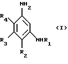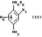 Наиболее предпочтительными из приведенных выше п-фенилендиамина формулы II являются п-фенилендиамин, п-толуилендиамин, 2-изопропил-п-фенилендиамин, 2-( -гидроксиэтил)-п-фенилендиамин, 2-( -гидроксиэтокси)-п-фенилендиамин, 2,6-диметил-п-фенилендиамин, 2,6-диэтил-п-фенилендиамин, 2,3-диметил-п-фенилендиамин, N, N-бис( -гидроксиэтил)-п-фенилендиамин, 2-хлор-п-фенилендиамин, 2-( -ацетиламиноэтокси)-п-фенилендиамин и их солевые аддукты с кислотами.