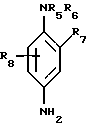 Из числа п-фенилендиаминов, пригодных для использования в качестве окисляемых оснований в красящих композициях по изобретению, следует, в частности, назвать соединения приведенной ниже формулы II и их солевые аддукты с кислотами:![]() в которой R5 обозначает атом водорода, С1-С4-алкил, моногидрокси-С1-С4-алкил, полигидрокси-С2-С4-алкил, С1-С4-алкокси-С1-С4-алкил, С1-С4-алкил, замещенный азотсодержащей группой, фенилом или 4′-аминофенилом; R6 обозначает атом водорода, С1-С4-алкил, моногидрокси-С1-С4-алкил, полигидрокси-С2-С4-алкил, С1-С4-алкокси-С1-С4-алкил или С1-С4-алкил, замещенный азотсодержащей группой; R7 обозначает атом водорода, атом галогена: хлор, бром, йод или фтор, С1-С4-алкил, моногидрокси-С1-С4-алкил, гидрокси-С1-С4-алкокси, ацетиламино-С1-С4-алкокси, мезил-амино-С1-С4-алкокси или карбамоиламино-С1-С4-алкокси; и R8 обозначает атом водорода, атом галогена или С1-С4-алкил. Из числа азотсодержащих групп в приведенной выше формуле I следует, в частности, назвать группы амино, моно-С1-С4-алкиламино, ди-С1-С4-алкиламино, три-С1-С4-алкиламино, моногидрокси-С1-С4-алкиламино, имидазолиниевую и аммониевую. Из числа п-фенилендиаминов приведенной выше формулы II можно, в частности, назвать п-фенилендиамин, п-толуилендиамин, 2-хлор-п-фенилендиамин, 2,3-диметил-п-фенилендиамин, 2,6-диметил-п-фенилендиамин, 2,6-диэтил-п-фенилендиамин, 2,5-диметил-п-фенилендиамин, N, N-диметил-п-фенилендиамин, N, N-диэтил-п-фенилендиамин, N, N-дипропил-п-фенилендиамин, 4-амино-N,N-диэтил-3-метиланилин, N, N-бис( -гидроксиэтил)-п-фенилендиамин, 4-N, N-бис( -гидроксиэтил) амино-2-метиланилин, 4-N,N-бис( -гидроксиэтил) амино-2-хлоранилин, 2-( -гидроксиэтил)-п-фенилендиамин, 2-фтор-п-фенилендиамин, 2-изопропил-п-фенилендиамин, N-( -гидроксипропил)-п-фенилендиамин, 2-гидроксиметил-п-фенилендиамин, N,N-диметил-3-метил-п-фенилендиамин, N-этил-N-( -гидроксиэтил)-п-фенилендиамин, N-( , -дигидроксипропил)-п-фенилендиамин, N-(4′-аминофенил)-п-фенилендиамин, N-фенил-п-фенилендиамин, 2-( -гидроксиэтокси)-п-фенилендиамин, 2-( -ацетиламиноэтокси)-п-фенилендиамин, N-( -метоксиэтил)-п-фенилендиамин и их солевые аддукты с кислотами.