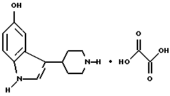 Гидрирование/гидрогенолизК раствору 1,23 г (4 ммоль) 5-бензилокси-3-[1,2,5,6-тетрагидро -4-пиридил]-1Н-индола в 50 мл смеси тетрагидрофу-ран:этанол, 1:1, добавляют 0,3 г 5%-ного палладия на угле и реакционную смесь гидрируют при комнатной температуре в течение 18 часов при начальном давлении водорода 420 кПа (60 фунтов/кв. дюйм). Затем реакционную смесь фильтруют через слой цеолита и фильтрат концентрируют при пониженном давлении. Остаток переводят в оксалат и выделяют 0,98 г (80,0%) Соединения III в виде коричневой пены. Т.пл. 67oС. Масс-спектр (м/е): 216 (М+). Элементный анализ. Вычислено: С 58,81, Н 5,92, N 9,14. Брутто-формула: C13H16N2O C2H2O4. Найдено С 58,70, Н 5,95, N 9,39.