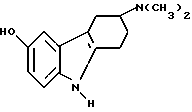 Восстановительное аминированиеК раствору 0,5 г (2,78 ммоль) 8-хлор-2-тетралона в 25 мл циклогексана добавляют 1,4 мл (13,9 ммоль) диэтиламина и затем 0,1 г моногидрата п-толуолсульфокислоты. Затем реакционную смесь кипятят с обратным холодильником с постоянным удалением воды (насадка Дина-Старка) в течение 18 часов. Реакционную смесь охлаждают до комнатной температуры и летучие вещества удаляют при пониженном давлении. Затем остаток растворяют в 15 мл метанола, к которому добавляют 1,5 мл уксусной кислоты, после чего порциями добавляют 0,5 г боргидрида натрия. Реакционную смесь перемешивают в течение 1 часа при комнатной температуре. Реакционную смесь затем разбавляют 20 мл 10%-ной НСl и перемешивают еще в течение часа. Далее реакционную смесь экстрагируют диэтиловым эфиром и оставшуюся водную фазу выливают в лед, подщелачивают гидроксидом аммония и тщательно экстрагируют дихлорметаном. Эти экстракты объединяют, сушат над сульфатом натрия и концентрируют при пониженном давлении. Остаток опять растворяют в дихлорметане и хроматографируют на основном оксиде алюминия, элюируя дихлорметаном. Фракции, содержащие продукт, объединяют и концентрируют при пониженном давлении. Оставшееся масло растворяют в диэтиловом эфире и раствор насыщают хлористым водородом. Вязкий остаток кристаллизуют из смеси ацетон/диэтиловый эфир, получают 0,20 г (23,2%) Соединения IV в виде бесцветных кристаллов. Т.пл. 158-159oС. Масс-спектр (м/е): 273. Элементный анализ. Вычислено: С 61,32, Н 7,72, N 5,11. Брутто-формула: C14H21NClHCl. Найдено С 61,62, Н 7,94, N 5,03. Соединение V 6-гидрокси-3-диметиламино -1,2,3,4-тетрагидрокарбазол ![]() Соединение V может быть получено по следующей методике. Этиленкеталь 4-диметиламино-1-циклогексанона К раствору 5,0 г (32 ммоль) моно-этиленкеталя 1,4-циклогександиона и 10,80 г (240 ммоль) диметиламина добавляют 2,0 мл уксусной кислоты и смесь перемешивают при oС в течение 1,5 часов. Затем к полученному раствору добавляют 3,62 г (58 ммоль) цианборгидрида натрия и реакционную смесь перемешивают при комнатной температуре еще один час. С помощью 16 мл уксусной кислоты рН реакционной смеси доводят до приблизительно 7 и перемешивают в течение 18 часов при комнатной температуре. Летучие вещества удаляют при пониженном давлении и остаток растворяют в холодном 5%-ном растворе винной кислоты и водную фазу подщелачивают с помощью 5 н. раствора гидроксида натрия. Водную фазу тщательно экстрагируют дихлорметаном. Органические экстракты объединяют и концентрируют при пониженном давлении, получают 5,04 г (85%) названного соединения в виде масла. 4-диметиламино-1-циклогексанон 4,96 г (26,8 ммоль) этиленкеталя 4-диметиламино-1-циклогексанона растворяют в 50 мл муравьиной кислоты и раствор перемешивают при кипячении с обратным холодильником в течение 18 часов. Реакционную смесь охлаждают до комнатной температуры и летучие вещества удаляют при пониженном давлении, получают 3,78 г (100%) названного соединения. 6-бензилокси-3-диметиламино -1,2,3,4-тетрагидрокарбазол К раствору 3,78 г (26,8 ммоль) 4-диметиламино-1-циклогексанона и 6,69 г (26,8 ммоль) гидрохлорида 4-бензилоксифенилгидразина в 50 мл этанола добавляют 2,17 мл (26,8 ммоль) пиридина. К полученному раствору добавляют порциями (5 х 10 мл) воду и реакционную смесь оставляют на 18 часов при температуре 0oС. Реакционную смесь разбавляют еще 50 мл воды и смесь тщательно экстрагируют метиленхло
