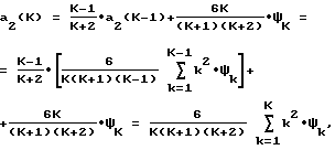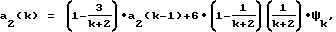 k смежных текущих фаз сигнала, формирование двухкомпонентного вектора состояния а(k), компоненты которого задают рекуррентными выражениями, при этом оценку частоты