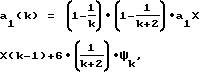 с учетом ее предыдущего значения а1 (k-1), поступающего на второй вход АУ 13 с его выхода через второй элемент памяти 15. Во втором АУ 14 на основе разности