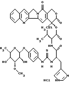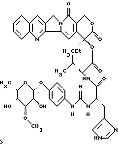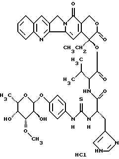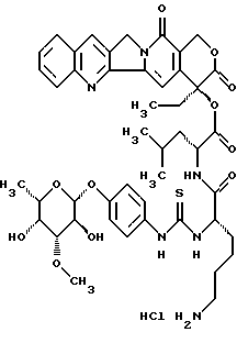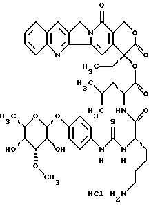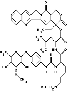 L-фукопиранозил)-4-гидрокси-фениламино-тиокарбонил]-L-лизил-L-леуцил}-камптотецин, гидрохлорид: