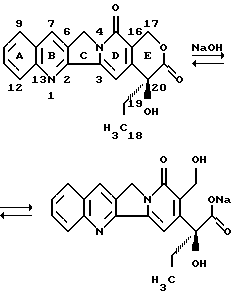 Через расщепление кольца Е-лактона и образование соли натрия было получено соединение, растворимое в воде, которое находилось, в зависимости от баланса уровня рН, в форме замкнутого кольца. Но клинические испытания также не привели к успеху.