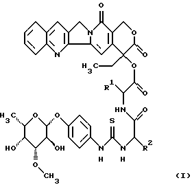 L-фукопиранозил)-4-гидрокси-фениламино-тиокарбонил] -L-лизил-L-валил} -камптотецином формулы