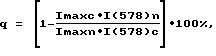 ![]() где Imaxc, Imaxn – интенсивности максимума линии спектра в области 590-605 нм для соответственно подозреваемой и нормальной тканей; I(578)c, I(578)n – интенсивности минимума линии спектра в точке 578 нм, соответствующего пику поглощения крови, для соответственно подозреваемой и нормальной тканей, причем при q 0 диагностируют нормальную ткань, а при – наличие онкологического заболевания с конкретизацией вида опухолей по величине q.
