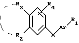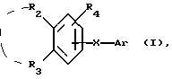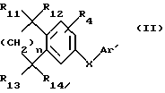 (57) Реферат: Изобретение относится к новым соединениям формулы (I) ![]() где Аr представляет собой радикал, выбранный из формул (а) и (b) ниже: ![]() R1 представляет собой атом галогена, -СН3, СН2ОR7, -ОR7, СОR8, R2 и R3, взятые вместе, образуют 5- или 6-членное кольцо, R4 и R5 представляют собой Н, атом галогена, С1-С10-алкил, R7 представляет собой Н, R8 представляет Н или , Х представляет собой радикал -Y-С С-, r’ и r” представляет Н, С1-С10 алкил, фенил, Y представляет собой S(О)n или SE, n = 0, 1 или 2, и солям соединений формулы (I). Указанные соединения могут применяться, в частности, для лечения дерматологических нарушений, связанных с нарушениями кератинизации, и для борьбы со старением кожи. 3 с. и 8 з.п. ф-лы, 3 табл.