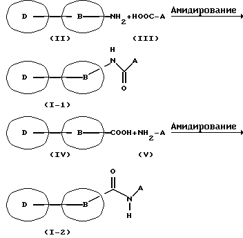 ![]() символы в формуле имеют следующие значения: D представляет пиразолильную группу, которая может иметь 1-3 галогенозамещенных или незамещенных низших алкильных группы в качестве заместител(я)ей; В представляет фениленовую или тиофендиильную группу; Х представляет группу формулы -NH-CO- или -CO-NH-; А представляет фенильную группу, которая может быть замещена одним или несколькими атомами галогена, или пяти- или шестичленную моноциклическую гетероарильную группу, содержащую 1-4 гетероатома, выбранных из атома азота, атома серы и атома кислорода, которая может быть замещена одной или несколькими низшими алкильными группами, при условии, что исключены 4-метил-4′-[3,5-бис(трифторметил)-1Н-пиразол-1-ил] -1,2,3-тиадиазол-5-карбоксианилид и 4′-хлор-5-(1-метил-5-трифторметил-1Н-пиразол-3-ил)тиофен-2-карбоксианилид, или его фармацевтически приемлемая соль. 2. Амидное производное или его фармацевтически приемлемая соль по п. 1, где D представляет пиразолильную группу, замещенную по меньшей мере одной трифторметильной группой. 3. Амидное производное или его фармацевтически приемлемая соль по п. 1, где D представляет 1-метил-3-трифторметил-1Н-пиразол-5-ил или 3,5-бис(трифторметил)-1Н-пиразол-1-ил и А представляет фенильную группу, которая может быть замещена атомом галогена, или пяти- или шестичленную моноциклическую гетероарильную группу, выбранную из группы, включающей тиазолил, тиадиазолил, тиенил и пиридил, которые могут быть замещены низшей алкильной группой. 4. Фармацевтическая композиция для ингибирования Ca2+ каналов, активируемых выделением Са2+, которая содержит амидное производное, представленное следующей общей формулой I’, или его фармацевтически приемлемую соль и фармацевтически приемлемый носитель ![]() символы в формуле имеют следующие значения: D представляет пиразолильную группу, которая содержит от 1 до 3 галогенозамещенных или незамещенных низших алкильных групп в качестве заместител(я)ей; В представляет фениленовую или тиофендиильную группу; Х представляет группу формулы -NH-CO- или -CO-NH-; А представляет фенильную группу, которая может быть замещена одним или несколькими атомами галогена, или пяти- или шестичленную моноциклическую гетероарильную группу, содержащую 1-4 гетероатома, выбранных из атома азота, атома серы и атома кислорода, которая может быть замещена одной или несколькими низшими алкильными группами. 5. Фармацевтическая композиция по п. 4, являющаяся ингибитором продуцирования ИЛ-2. 6. Фармацевтическая композиция по п. 5, предназначенная для профилактики или лечения аллергических, хронических воспалительных или аутоиммунных заболеваний. 7. Фармацевтическая композиция по п. 6, предназначенная для профилактики или лечения бронхиальной астмы. 8. Фармацевтическая композиция по п. 6, предназначенная для профилактики или лечения ревматоидного артрита. 9. Фармацевтическая композиция по любому одному из пп. 4-8, содержащая амидное производное, выбранное из группы, включающей 4-метил-4′-[3,5-бис(трифторметил)-1Н-пиразол-1-ил] тиазол-5-карбоксианилид, 2′-хлор-5-(1-метил-3-трифторметил-1Н-пиразол-5-ил)тиофен-2-карбоксианилид, 4-хлор-4′-(1-метил-3-трифторметил-1Н-пиразол-5-ил)-бензанилид, 4-метил-4′-[3,5-бис(трифторметил)-1Н-пиразол-1-ил] -1,2,3-тиадиазол-5-карбоксианилид, 3-метил-4′-[3,5-бис(трифторметил)-1Н-пиразол-1-ил] тиофен-2-карбоксианилид и 4′-[3,5-бис(трифторметил