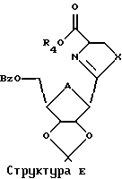 Способ В: К энергично перемешиваемому раствору неочищенного этилового эфира 2-(5′- -бензоил-2′, 3′- -изопропилиден- -D-рибофуранозил)тиазолин-4-карбоновой кислоты ( , 2,0 г) в метиленхлориде (100 мл) добавляли пероксид никеля (10,0 г) при комнатной температуре. Реакционную смесь перемешивали при комнатной температуре в течение 24 часов, фильтровали через целит и промывали ацетоном (200 мл). Фильтраты объединяли и выпаривали до сухого состояния с получением маслянистого остатка. Выход 5,9 г (88% от цианосахара ). Было установлено, что продукт, полученный этим способом, идентичен продуктам, полученным способами А и Б, во всех отношениях.