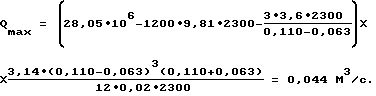 Пример. Продуктивный пласт представлен песчаниками валанжинских отложений, скважина 12 Южно-Парусная газоконденсатного месторождения. Используют буровую установку Уралмаш 3Д-76, насос У8-7М с цилиндрическими втулками диаметром 200 мм, который при коэффициенте наполнения 0,9 создает n=6 вариантов подачи бурового раствора: расход 0,028 м3/с при 40 двойных ходах в 1 мин; 0,031 м3/с – 45; 0,035 м3/с – 50; 0,038 м3/с – 55; 0,042 м3/с – 60; 0,045 м3/с – 65.