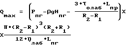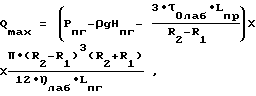 Qmin Qi Qmax,при этом ![]() ![]() где Qmin – минимальный расход бурового раствора, определяемый технической характеристикой насосного агрегата и обеспечивающий турбулентный режим течения бурового раствора в кольцевом пространстве скважины, м3/с; Qi– расход бурового раствора при i-м режиме промывки скважины, м3/с, где i= 1, . . . , k, при k не более n; где n – максимальное количество вариантов подачи бурового раствора насосным агрегатом, определяемое его технической характеристикой; Qmax – максимальный расход бурового раствора, определяемый технической характеристикой насосного агрегата и условием предотвращения поглощения бурового раствора, м3/с; R2, R1 – средневзвешенные радиус скважины и наружный радиус бурильных труб, соответственно, м; 0лаб – динамическое напряжение сдвига, определяемое в лабораторных условиях, Па; – плотность бурового раствора, кг/ м3;Рпг – давление поглощения, Па; g – ускорение свободного падения, м/ с2; Нпг – глубина залегания горизонта с минимальным давлением поглощения, м; Lпг – длина бурильных труб до глубины залегания горизонта с минимальным давлением поглощения, м; лаб – пластическая вязкость, определяемая в лабораторных условиях, Па с,и по полученным данным строят график зависимости давления нагнетания от расхода бурового раствора, экстраполируют прямую до пересечения с координатной осью давления нагнетания, по величине отсекаемого отрезка определяют давление нагнетания бурового раствора в колонне бурильных труб, значение которого находится в пределах ламинарного режима течения бурового раствора, причем определение средневзвешенной величины динамического напряжения сдвига проводят с учетом всей глубины скважины по формуле ![]() где 0 – средневзвешенная величина динамического напряжения сдвига, Па;Рон – давление нагнетания бурового раствора в колонне бурильных труб, значение которого находится в пределах ламинарного режима течения бурового раствора, Па; L -длина бурильных труб, м; R – средневзвешенный внутренний радиус бурильных труб, м, а также дополнительно рассчитывают средневзвешенную по глубине скважины величину пластической вязкости по формуле ![]() где – средневзвешенная по глубине скважины величина пластической вязкости, Па c;Рнi – давление нагнетания бурового раствора в колонне бурильных труб при i-м установившемся режиме промывки скважины, Па. РИСУНКИ