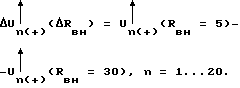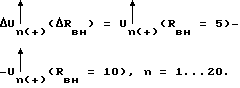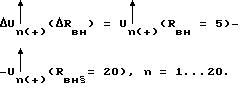 При контроле перемещения изменение расстояния от вихретокового преобразователя до контролируемого объекта приводит к изменению Rвн и Lвн, a следовательно, в соответствии с формулами (5-8), к изменению амплитуды анализируемого полупериода. На фиг.2 сплошной и пунктирной линией показаны колебания с разными коэффициентами затухания, соответствующие расстояниям h1 и h2 до контролируемого объекта, при этом изменение частоты колебаний для простоты не показано. Из фиг.2 видно, что приращение амплитуд U имеет максимум на пятом полупериоде, из чего можно сделать вывод о зависимости чувствительности от порядкового номера полупериода.
