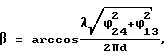 радиан соответственно, и измерение трех разностей фаз к между сигналами, принятыми каждой из трех антенн антенной решетки и сигналом, принятым четвертой антенной, отличающийся тем, что выбирают из трех разностей фаз 1, 2 и 3 m-ю, значение модуля которой является максимальным, формируют две однозначные разности фаз Фк для к m по правилу:Фк = к,а третью однозначную разность фаз Фк для к= m формируют по правилу ![]() где к= 1, 2 и 3; l = 1+ 2+ 3;m – значение индекса максимальной разности фаз; ![]() и однозначно определяют азимут и угол места источника радиосигнала по формулам:![]() ![]() где ![]() Фс= 2Ф1-Ф2-Ф3; – длина волны радиосигнала, минимальное значение которой превышает b.
