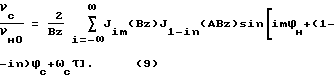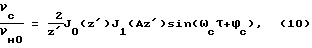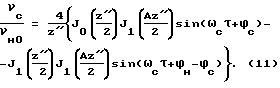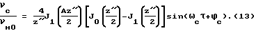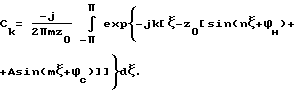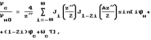 В заявляемом способе B= 1/2 (при m=1, n=2), подставляя которое в (9), получим![]() где z” – координата, нормированная на расстояние образования разрыва в волне накачки при B=1/2. Члены ряда в последнем выражении быстро убывают с ростом i, поскольку z”/2 1 и Az”/2 1. Поэтому слагаемые при i>1 и i<0 можно отбросить (при этом погрешность составит не более 3%) и получим![]() Из анализа полученного выражения следует, что в данном случае поведение сигнальной волны зависит от соотношения начальных фаз сигнальной волны c и накачки н, причем максимальное ее подавление будет при н-2 c= 0. (12)При этом выражение (11) примет вид ![]() Таким образом, взаимодействие слабой сигнальной волны с интенсивной волной накачки при н= 2 c и н= 2 c сопровождается поглощением первой по закону (13).