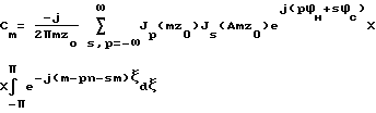 К недостаткам прототипа следует отнести:– низкая эффективность подавления сигнальной волны при нелинейном взаимодействии сигнальной волны и волны накачки, имеющих близкие частоты; – низкие защитные свойства способа в устройствах противодействия, обусловленные тем, что пришедшая к локатору волна накачки, имеющая большую амплитуду и частоту, близкую к частоте сигнальной волны, может быть зарегистрирована приемным трактом облучающего локатора из-за конечной ширины полосы пропускания и неидеальности его амплитудно-частотной характеристики, что демаскирует защищаемый объект; – низкая эффективность подавления низкочастотных сигналов, т.к. при понижении частоты сигнальной волны снижается и частота накачки, что приводит к значительному удлинению области взаимодействия, в то время как объективно протяженность этой области нужно уменьшать, чтобы сигнальная волна не могла дойти до приемника. Перед авторами стояли задачи: – увеличить эффективность звукогашения; – предотвратить возможность попадания волны накачки в полосу пропускания приемного тракта локатора; – обеспечить подавление низкочастотного сигнала высокочастотной накачкой с целью уменьшения протяженности области эффективного звукогашения. Техническим результатом изобретения является улучшение защитных свойств способа активного звукогашения для акустических систем противодействия и обеспечение возможности подавления низкочастотного сигнала высокочастотной накачкой. Технический результат достигается тем, что в направление распространения подавляемой сигнальной волны совместно с нею излучают интенсивную волну накачку, частота и начальная фаза которой больше в два раза частоты и начальной фазы подавляемой сигнальной волны. Изобретение соответствует критерию изобретательский уровень, новизна и промышленная применимость, поскольку не обнаружено решений с признаками, отличающими заявляемый способ от прототипа. Возможность достижения технического результата подтверждается следующими теоретическими выводами. Рассмотрим задачу поглощения звука звуком в рамках плосковолновой модели в квадратично-нелинейной среде в доразрывной области. Волновые процессы в такой среде описываются уравнением простых волн ![]() где – колебательная скорость в волне; х – пространственная координата, вдоль которой распространяется волна; = (t-x/c0)- время в сопровождающей системе координат; с0 – скорость звука в среде распространения; – параметр нелинейности среды (кн. : Виноградова М.Б., Руденко О.В., Сухоруков А.П. Теория волн – М.: Наука, 1990, с.317) имеет точное решение в виде![]() где f – произвольная функция, определяемая граничными условиями. Решение (2) описывает трансформацию исходного возмущения в нелинейной среде с расстоянием. Выражение (2) имеет физический смысл вплоть до расстояния xp, начиная с которого в профиле волны происходит формирование разрыва – участка волны с бесконечно большим градиентом колебательной скорости (кн. : Виноградова M. Б. и др. Теория волн). Считая, что х хp, получим для простой волны , имеющей период, равный 2 , выражение комплексного спектра![]() где – круговая частота; пространственная координата, нормированная на расстояние образования разрыва в основной гармонике исходной волны; u = / 01, где 01– начальная амплитуда (при x=0) основной гармоники. В