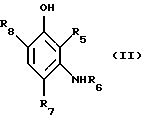 Из м-аминофенолов формулы (II), используемых в качестве краскообразующего компонента в красящей композиции согласно изобретению, в частности, можно назвать м-аминофенол, 5-амино-2-метоксифенол, 5-амино-2-( -гидроксиэтилокси)-фенол, 5-амино-2-метилфенол, 5-N-( -гидроксиэтил)амино-2-метилфенол, 5-N-( -гидроксиэтил)амино-4-метокси-2-метилфенол, 5-aминo-4-мeтoкcи-2-мeтилфeнол, 5-амино-4-хлор-2-метилфенол, 5-aминo-2,4-диметоксифенол, 5-( -гидроксипропиламино)-2-метилфенол, 3-амино-6-хлорфенол, 3-амино-6-бромфенол, 3-( -аминоэтил)-амино-6-хлорфенол, 3-( -гидроксиэтил)амино-6-хлорфенол, и их соли присоединения с кислотой.