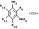 4. Композиция по п. 1 или 2, отличающаяся тем, что м-аминофенолы формулы (II) выбирают из м-аминофенола, 5-амино-2-метоксифенола, 5-амино-2-( -гидроксиэтилокси)-фенола, 5-амино-2-метилфенола, 5-N-( -гидроксиэтил)амино-2-метилфенола, 5-N( -гидроксиэтил)амино-4-метокси-2-метилфенола, 5-амино-4-метокси-2-метилфенола, 5-амино-4-хлор-2-метилфенола, 5-амино-2,4-диметоксифенола, 5-( -гидроксипропиламино)-2-метилфенола, 3-амино-6-хлорфенола, 3-амино-6-бромфенола, 3-( -аминоэтил)-амино-6-хлорфенола, 3-( -гидроксиэтил)амино-6-хлорфенола, и их солей присоединения с кислотой.