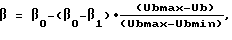 ![]() где – текущее значение угла наклона оси кулачкового паза относительно образующей ступицы подвижного полушкива;Ubmax – максимальное значение передаточного отношения вариатора; Ubmin – минимальное значение передаточного отношения вариатора; Ub – текущее значение передаточного отношения вариатора; 0 – значение угла при Ub= Ubmax; 1 – значение угла при Ub= Ubmin.