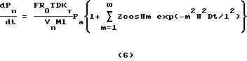 Так как давление Рn в измерительной камере в течение опыта остается очень небольшим в сравнении с атмосферным давлением на поверхности материала со стороны рабочей камеры принимаем его нулевым, а P = Pa.Граничное условие a на поверхности материала a = KгPa (4)где Кг – константа Генри. Для решения уравнений (1), (2), (3) в данных граничных условиях добавим уравнения ![]() здесь Vn – номинальный объем вакуумированной измерительной камеры; М – молярная масса газа; F – площадь образца; Rо – газовая постоянная. В указанных граничных условиях решение уравнения (3) наиболее удобно представить в форме ряда Фурье. Полученное решение после совместного решения с уравнениями (1) и (2) ведет к результату: ![]() Из этого уравнения видно, что в начале изменение давления в измерительной камере идет по возрастающей непропорционально времени и затем после определенного времени остается постоянным и равным ![]() Если активные поры малы, а разряжение велико, то может оказаться, что при данном разряжении длина свободного пробега молекул больше диаметра пор. В этом случае имеем Кнудсеновское истечение газа. Изменения давления при Кнудсеновском истечении, как и при ламинарном, будет определяться уравнением (6), но при Кнудсеновском расход будет больше, т.к. газ в этом режиме движется со скольжением относительно стенок. Необходимо отметить, что при больших размерах минимальных пор и данном разряжении (со стороны рабочей камеры – атмосферное давление, со стороны измерительной камеры – вакуум) может оказаться сразу ламинарный режим истечения. Осциллограмма изменения давления в измерительной камере в этом случае будет иметь лишь два участка, определяющиеся уравнением 6: первый – нелинейный и второй – пропорциональный. В этом случае необходимо рабочую камеру соединить не с атмосферой, а с газовой емкостью значительно большего объема, чем рабочая камера, в которой газ находится под давлением, меньшим атмосферного. Какие бы ни были поры образца, подбирая разряжение в газовой емкости, получим первоначальный режим Кнудсеновского режима истечения газа, осциллограмма которого (фиг.2) содержит два участка, разделенные точками b, d – непропорционального и пропорционального изменения Так как с увеличением давления в измерительной камере величина свободного пробега молекул газа уменьшается, то наступит момент, когда в наиболее крупных активных порах будет уже ламинарный поток, в то время как в более мелких еще Кнудсеновский режим истечения, – участок cd смешанного (Кнудсеновского и ламинарного) режима истечения на осциллограмме (фиг.2). В точке d осциллограммы все активные поры образца переходят на ламинарный режим истечения. Меньший наклон прямой пропорционального изменения давления в измерительной камере при ламинарном режиме истечения, чем при Кнудсеновском, объясняется тем, что при Кнудсеновском газ движется со скольжением относительно стенок пор.