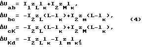 – угол между векторами UZ и UA; ZA, ZAB, ZАС – собственное и взаимное удельное сопротивление 1 км трехфазной линии электропередачи [4, с. 162 и 163].
