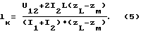 При вычислении этих падений напряжения необходимо учитывать не только собственные сопротивления проводов, но и сопротивления, обусловленные их взаимным индуктивным влиянием [5]. Для схемы, приведенной на фиг.3, с учетом направлений токов I1 и I2 и направления обхода контура “аabcКd” имеем![]() где zL – сопротивление одного километра контура “провод – земля”; м – сопротивление взаимоиндукции 1 км двух контуров “провод – земля” [5, 6]. Подставив выражения (4) в формулу (3), получим ![]() Согласно [6, с. 25] имеет место соотношение z=zL-zм, (6) где z – удельное сопротивление прямой последовательности 1 км трехфазной линии электропередачи. Подставив выражение (6) в (5), получим формулу (1) для способа 1 и устройства. В способе 2 точка “d” отсоединена от источника питания и присоединена к точке “а”. При этом имеем U12=0. Подставив это значение U12 в выражение (5) и имея в виду соотношение (6), получим для способа 2 формулу (2). Поскольку провода линии во всех трех фазах выполнены одинаковыми проводами, то фазовые углы токов I1 и I2 в способе 2 также являются одинаковыми. Поэтому в формуле (2) используются не комплексные значения токов, а их модули. Этим доказывается принцип действия и работоспособность предложенных способов и устройства. Источники информации 1. Герман Л. А., Векслер М.И., Шелом И.А. Устройства и линии электроснабжения автоблокировки. – М.: Транспорт, 1987, 192 с. 2. Фигурнов Е. П. , Тептиков Н.Р. Определение удаленности замыканий в высоковольтных линиях автоблокировки. В кн.: Релейная защита и автоматика устройств электроснабжения железных дорог Межвузовский сборник трудов. Ростовский институт инженеров ж-д. транспорта, вып.144. Ростов-на-Дону, РИИЖТ, 1978, с. 81-86. 3. Айзенфельд А.И., Аронсон В.Н., Гловацкий В.Г. Фиксирующий индикатор сопротивления ФИС. – М.: Энергоатомиздат, 1987, 64 с. 4. Авт.св. СССР N 161410. Устройство для определения места короткого замыкания в контактной сети железных дорог переменного тока. / Е.П. Фигурнов, Ю. Я. Самсонов. Кп. G 01 r; 21 e, 29/10; В 61 т; 20 К, 20. 787278/24-7. Заявка 16.07.62. опубл. 19.03.64, Бюл. 7. 5. Марквардт К. Г. Энергоснабжение электрических железных дорог. – М.: Транспорт, 1965. 6. Лосев С.Б., Чернин А.Б. Вычисление электрических величин в несимметричных режимах электрических систем. – М.: Электроатомиздат, 1983. Формула изобретения