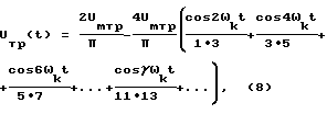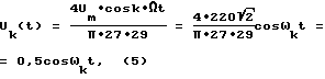 выпрямленного напряжения U(t), будет протекать по цепи: точка 1 – диод Д1 – резистор 3 – диод Д3 – точка 2. Ток k-й гармоники частоты