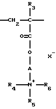 Полимеры полиаминного, полиаминоамидного или четвертичного полиаммониевого типа, используемые согласно настоящему изобретению, которые могут быть, в частности, указаны, представляют собой полимеры, описанные в патентах Франции 2505348 или 2542997. Из этих полимеров можно назвать(1) гомополимеры или сополимеры, происходящие от эфиров или амидов акриловой или метакриловой кислоты и включающие по крайней мере одно из звеньев следующих формул ![]() ![]() ![]() ![]() в которых R3, одинаковые или разные, означают атом водорода или радикал СН3; А, одинаковые или разные, означают линейную или разветвленную алкильную группу с 1-6 атомами углерода, предпочтительно с 2 или 3 атомами углерода, или гидроксиалкильную группу с 1-4 атомами углерода; R4, R5, R6 одинаковые или разные, означают алкильную группу с 1-18 атомами углерода или бензильный радикал и предпочтительно означают алкильную группу с 1-6 атомами углерода; R1 и R2, одинаковые или разные, означают атом водорода или алкильную группу с 1-6 атомами углерода и предпочтительно метил или этил; Х означает анион, происходящий от неорганической или органической кислоты, такой как метосульфат- или галоген-анион, такой как хлор- или бром-анион. Сополимеры формулы (I) могут содержать, кроме того, одно или несколько звеньев, происходящих от сомономеров, которые могут быть выбраны из группы, состоящей из акриламидов, метакриламидов, акриламиддиацетонов; акриламидов и метакриламидов, замещенных по атому азота низшими алкильными группами с 1-4 атомами углерода; акриловых или метакриловых кислот или их эфиров; виниллактамов, таких как винилпирролидон или винилкапролактам; сложных виниловых эфиров. Так, из этих сополимеров группы (1) можно назвать: – сополимеры акриламида и диметиламиноэтилметакрилата, кватернизованного диметилсульфатом или диметилгалогенидом, такие как сополимер, выпускаемый фирмой HERCULES под названием HERCOFLOC; – сополимеры акриламида и метакрилоилоксиэтилтриметиламмонийхлорида, описанные, например, в заявке на Европейский патент А-080976 и выпускаемые фирмой CIBA GEIGY под названием BINA QUAT Р 100; – сополимер акриламида и метакрилоилоксиэтилтриметиламмонийметосульфата, выпускаемый фирмой HERCULES под названием RETEN; – сополимеры винилпирролидона и диалкиламиноалкилакрилата или -метакрилата, кватернизованные или нет, такие как продукты, выпускаемые фирмой ISP под названием “GAFQUAT”, как, например, “GAFQUAT 734” или “GAFQUAT 755”, или продукты, называемые “COPOLYMER 845, 958 и 937”, причем эти полимеры подробно описаны в патентах Франции 2077143 и 2393573; – тройные сополимеры диметиламиноэтилметакрилата, винилкапролактама и винилпирролидона, такие как продукт, выпускаемый фирмой ISP под названием GAFFIX VC713; – сополимеры винилпирролидона и метакриламидопропилдиметиламина, выпускаемые, в частности, фирмой ISP под названием STYLESE СС 10; – и сополимеры винилпирролидона и кватернизованного диметиламинопропилметакриламида, такие как продукт, выпускаемый фирмой ISP под названием “GAFQUAT HS 100”; (2) производные простых эфиров целлюлозы с четвертичными аммониевыми группами, описанные в патенте Франции 1492597, и, в частности, полимеры, выпускаемые фирмой Union Carbide Corporation под названиями “JR” (JR 400, JR 125, JR 30М) или “LR” (LR 400, LR 30М). Эти полимеры также определены в словаре Ассоциации по парфюмерно-косметическим товарам и душистым веществам как четвертичные аммониевые