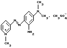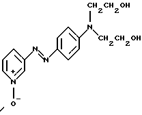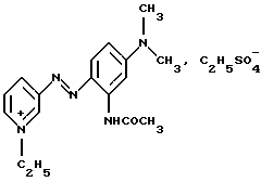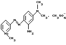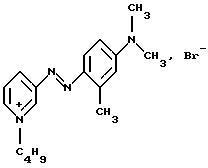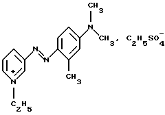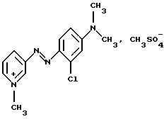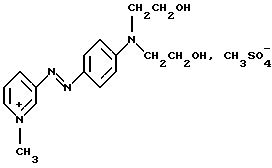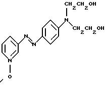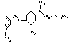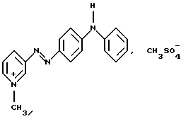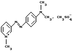 Производное или производные 3-аминопиридина формулы (I) согласно изобретению предпочтительно выбирают среди следующих соединений:4′-диметиламинобензол-1′,3-азо-1- метилпиридинийметосульфат формулы: ![]() 4′-бис( -гидроксиэтил)аминобензол-1′, 3-азо-1-метилпиридинийметосульфат формулы:![]() 4′-амино-8′-гидроксинафталин-1′, 3-азо-1-метилпиридинийметосульфат формулы: ![]() 4′-диметиламино-2′-нитробензол-1′, 3-азо-1-метилпиридинийметосульфат формулы: ![]() 4′-диметиламинобензол-1′,3-азо-1,6-диметилпиридинийметосульфат формулы: ![]() 4′-аминобензол-1′,3-азопиридин-N-оксид формулы: ![]() 4′-диметиламинобензол-1′,3-азопиридин-N-оксид формулы: ![]() 4′-N,N-бис( -гидроксиэтил)анинобензол-1′,3-азопиридин-N-оксид формулы:![]() 4′-диметиламино-2′-метилбензол-1′, 3-азо-1-этилпиридинийэтосульфат формулы: ![]() 4′-диметиламино-2′-метилбензол-1′,3-азо-1-бутилпиридинийбромид формулы: ![]() 4′-диметиламино-2′-хлорбензол-1′, 3-азо-1-метилпиридинийметосульфат формулы: ![]() 2′, 4′-диамино-5′-метилбензол-1′, 3-азо-1-метилпиридинийметосульфат формулы: ![]() 4′-фениламинобензол-1′,3-азо-1-метилпиридинийметосульфат формулы: ![]() 2′-ацетиламино-4′-диметиламинобензол-1′, 3-азо-1-этилпиридинийэтосульфат формулы: ![]() 2′, 4′-диамино-5′-метоксибензол-1′, 3-азо-1-метилпиридинийметосульфат формулы: ![]() и 2′-амино-4′-диметиламинобензол-1′, 3-азо-1-метилпиридинийметосульфат формулы: ![]() Производное или производные 3-аминопиридина формулы (I), используемые согласно изобретению, составляют предпочтительно около 0,001 – 10 мас.% по отношению к общей массе красящей композиции, и еще более предпочтительно около 0,01-5 мас.% по отношению к этой массе. Красящая композиция согласно изобретению, кроме того, может содержать один или несколько краскообразующих компонентов и/или одно или несколько окисляемых бензольных оснований и/или прямой краситель или прямые красители, отличающиеся от производных 3-аминопиридина формулы (I), в частности для модификации оттенков или обогащения их отливами. Из краскообразующих компонентов, которые могут присутствовать в красящей композиции согласно изобретению, можно, в частности, назвать н-фенилендиамины, м-аминофенолы, м-дифенолы, гетероциклические краскообразующие компоненты и их соли присоединения с кислотой. Когда эти дополнительные краскообразующие компоненты присутствуют, то они предпочтительно составляют около 0,0001-10 мас.%, по отношению к общей массе красящей композиции, и еще более предпочтительно около 0,005-5 мас.% по отношению к этой массе. Из окисляемых бензольных оснований, которые могут присутствовать в качестве дополнительных в красящей композиции согласно изобретению, можно, в частности, назвать п-фенилендиамины, п-аминофенолы, о-аминофенолы и двойные основания, такие, как бисфенилалкилендиамины. Когда эти бензольные основания присутствуют, они составляют предпочтительно около 0,0005-12 мас.% по отношению к общей массе красящей композиции согласно изобретению, и еще более предпочтительно около 0,005-6 мас.% по отношению к этой массе. Как правило, соли присоединения с кислотой, используемые в рамках красящих композиций согласно изобретению (окисляемые основания и краскообразующие компоненты), выбирают, в частности, среди гидрохлоридов, гидробромидов, сульфатов и тартратов, лактатов и ацетатов. Подходящая для окраски среда (или носитель) красящей композиции согласно изо