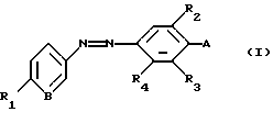 ![]() в которой В означает группу следующих формул (Iа) или (Ib): ![]() ![]() R означает (С1-С4)-алкил; R1 означает атом водорода или галогена, такого как хлор, бром или фтор, (С1-С4)-алкил или (С1-С4)-алкоксил; R2 означает атом водорода, (С1-С4)-алкил или (С1-С4)-алкоксил; R4 означает атом водорода или галогена, такого как хлор, бром или фтор, (С1-С4)-алкил, нитрогруппу, аминогруппу или (С1-С4)-ациламиногруппу; R3 означает атом водорода, или R4 и R3 образует шестичленный ненасыщенный цикл, содержащий гидроксильный заместитель, хелатированный с одним из атомов азота двойной азо-связи; А означает остаток -NR5R6, в котором R5 означает атом водорода, (С1-С4)-алкил, моногидрокси-(С1-С4)-алкил или полигидрокси-(С2-С4)-алкил; R6 означает атом водорода, (С1-С4)-алкил, моногидрокси-(С1-С4)-алкил или полигидрокси-(С2-С4)-алкил, фенил или радикал -СН2-SO3Na; Х– означает одновалентный или двухвалентный анион, и его предпочтительно выбирают из атома галогена, такого как хлор, бром, фтор или йод, гидроксида, гидросульфата или (С1-С6)-алкилсульфата, такого как например, метилсульфат или этилсульфат. 2. Композиция по п. 1, отличающаяся тем, что окисляемое основание или окисляемые основания выбирают среди производных пиридина, производных пиримидина, производных пиразола и их солей присоединения с кислотой. 3. Композиция по п.2, отличающаяся тем, что производные пиридина выбирают среди 2,5-диаминопиридина, 2-(4-метоксифенил)амино-3-аминопиридина, 2,3-диамино-6-метоксипиридина, 2-( -метоксиэтил)амино-3-амино-6-метоксипиридина, 3,4-диаминопиридина и их солей присоединения с кислотой.