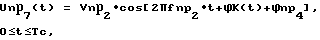 При прекращении перестройки гетеродина 19 усилителями 23-25 первой промежуточной частоты выделяются следующие напряжения:Unр4(t) = Vnр1 Cos[2 fnp1 t+ к(t)+ np1],Unр5(t) = Vnр1 Cos[2 fnp1 t+ к(t)+ np2],![]() Напряжения Uпр5(t) и Uпр6(t) с выходов усилителей 24 и 25 первой промежуточной частоты поступают на первые входы перемножителей 43 и 44 соответственно. Напряжение Uпр4(t) (фиг.4, в) с выхода усилителя 23 первой промежуточной частоты через открытый ключ 33 поступает на первый вход смесителя 38, на второй вход которого подается напряжение гетеродина 37, частота которого стабилизирована кварцем Uг2(t) = Vг2 cos[2 fг2 t+ к(t)+ г2],где Vг2, fг2, г2/ – амплитуда, частота и начальная фаза напряжения гетеродина 37.