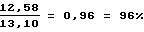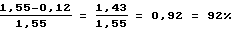 Степень гидрирования кислорода, определяемая как отношение количества кислорода, прореагировавшего в результате реакции гидрирования, к количеству кислорода, содержащемуся в нитрозном газе до протекания реакции гидрирования (до подачи водорода в нитрозный газ), составляет 92%, при степени стабилизации оксида азота (II), равной не менее 96% (см. таблицу). Степень стабилизации оксида азота (II) определяют как отношение содержания оксида азота (II) в нитрозном газе после процесса гидрирования к количеству его в нитрозном газе до подачи водорода.