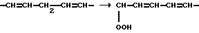 (57) Реферат: Изобретение направлено на получение составов для улучшения эксплуатационных характеристик полимерных покрытий, материалов и композитов и может быть применено в машиностроении и химической промышленности. Состав для обработки поверхности композиционных полимерных покрытий резинотехнических изделий и углеграфитовой основы перед пропиткой фенолформальдегидной смолой содержит 3,0-5,2 мас. % нафтената кобальта, 0,8-1,0 мас.% триацетонамина и 94-96 мас. % N-метилпирролидона. Улучшаются эксплуатационные характеристики резинотехнических изделий с полимерным покрытием и повышается прочность композиционного материала на основе углеграфитовой ткани и фенолформальдегидной смолы. 1 табл. Изобретение относится к составам для улучшения эксплуатационных характеристик полимерных покрытий, материалов и композитов и может найти применение в химической промышленности и в машиностроении. Известен способ для активации поверхности углеграфитовой ткани, являющейся армирующим компонентом композиционного материала, и полимерных покрытий на резинотехнические изделия (РТИ) на основе N-метилпирролидона и нафтената кобальта, ускоряющий процесс сшивки полимерного связующего, применяемый в композиционных материалах и покрытиях [Современные проблемы машиноведения: Материалы научно-технической конференции./Под ред. д.т.н. проф. А.С. Шагиняна. – Гомель: ГПИ. 1998. – Т1. – 170 с.]. Недостатками данного состава являются невысокие значения прочности на сжатие для композиционных материалов и низкая прочность на изгиб покрытий на РТИ. Перед авторами стояла задача улучшить эксплуатационные характеристики РТИ с покрытием и повысить прочность композиционного материала на основе углеграфитовой ткани и фенолформальдегидной смолы. Поставленная задача достигается тем, что в состав для обработки поверхности на основе N-метилпирролидона и нафтената кобальта дополнительно введен триацетонамин, причем компоненты взяты в следующем соотношении, мас.%: Нафтенат кобальта – 3,0 – 5,2 Триацетонамин – 0,8 – 1,0 N-метилпирролидон – 94,0 – 96,0 В процессе отверждения электроосажденных покрытий или пропитывающих ткани смол происходит образование межмолекулярных пространственных связей, сопровождающееся структурными превращениями пленкообразователя или смол. Отверждение пленкообразователя в покрытиях чаще всего происходит под влиянием кислорода воздуха посредством различных энергетических воздействий: нагревания, УФ- и радиационного облучения, пропускания электрического тока и др. При использовании в качестве пленкообразователя растительных масел процесс отверждения осуществляется в две стадии. На первой стадии образуются непредельные гидроперекиси и происходит изомеризация двойных связей по схеме: ![]() На второй протекает комплекс химических превращений, приводящих к образованию трехмерной сетки за счет окислительной полимеризации: ![]() Независимо от условий осуществления процесса пленкообразования всегда стремятся к его ускорению и проведению с минимальными энергетическими затратами. Ускорителями процесса отверждения покрытий являются соли одноосновных органических кислот. Так присутствие нафтената кобальта обуславливает протекание реакций, приводящих к ускорению распада гидропероксидов и образованию радикалов. Введение в смеси триа