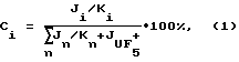 Молярную долю примесей (Сi n) в пробе гексафторида урана в процентах определяют по формуле: