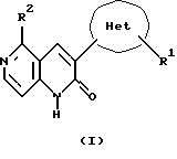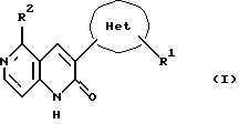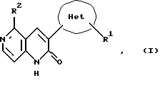 (57) Реферат: Настоящее изобретение относится к производным 5-замещенного-3-оксадиазолил-1,6-нафтиридин-2(1Н)-она формулы (I), где Het является оксадиазолилом, R1 является Н, низшим алкилом, циклонизшим алкилом, трифторметилом, низшим алкенилом, низшим алкинилом, низшим алкокси, низшим алкоксинизшим алкилом, гидроксинизшим алкилом, замещенной или незамещенной арильной или замещенной или незамещенной гетероароматической группой, и 2 является Н, низшим алкилом, циклонизшим алкилом, циклонизшим алкилметилом, низшим алкенилом, циклонизшим алкенилом, низшим алкинилом, замещенной или незамещенной арильной или замещенной или незамещенной гетероароматической группой, или их фармацевтически приемлемым аддитивным кислым солям, которые обладают высокоселективным сродством к рецептору бензодиазепина и являются в особенности пригодными, например, в качестве психоаналептического средства или лекарственного средства для лечения дисмнезии при старческом слабоумии или болезни Альцгеймера. Описаны также фармацевтическая композиция и промежуточные соединения, используемые в синтезе соединений формулы I. 3 с. и 4 з.п. ф-лы, 31 табл.