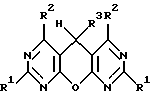 (57) Реферат: Изобретение относится к новым производным 5Н-пирано[2,3-d:6,5-d’]дипиримидина общей формулы I, обладающим антимикробным, противовирусным и иммуномодулирующим действием. В соединениях общей формулы I радикалы имеют следующие значения: R1 выбран из группы гидроксигруппа, меркаптогруппа, галоген, R2 выбран из группы гидроксигруппа, низшая алкоксигруппа, галоген, R3 выбран из группы водород, фенил или фенил, замещенный галогеном или нитрогруппой. Предпочтительны соединения, где 1=R2=OH, R3=4-O2NC6H4 (I); R1= R2=Cl, R3=C6H5 (II); R1=R2=ОН, R3=4-IС6H4 (III); R1=R2=ОН, R3=Н (IV); R1=OH, R2=ОСН3, R3=4-O2NC6H4 (V); R1=R2=OH, R3=4-ClС6Н4 (VI); R1=R2=OH, R3=4-BrC6H4 (VII); R1=SH, R2=OH, R3=4-ClC6H4 (VIII); R1=SH, R2=OH, R3=4-O2NC6H4 (IX). 9 з.п. ф-лы, 11 табл. I