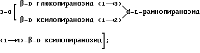 Патринозид В является О- ацилгликозидом олеаноловой кислоты. Установлен качественный состав и порядок присоединения сахаров углеводной цепи по 3-му положению генина.