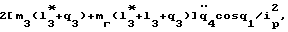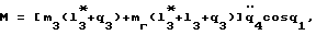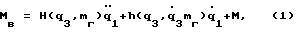 Моментное воздействие на выходной вал привода поворота со стороны движущихся масс исполнительного органа робота и груза, определенное с помощью уравнения Лагранжа 2 рода, имеет вид