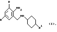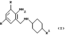 Изобретение относится к биохимии, в частности, к применению известных замещенных N-(2-аминобензил)циклогексиламинов общей формулы I: ![]() где R=Сl или Вr и R1=Н или ОН, и их фармакологически-приемлемых солей в качестве ингибиторов NО-зависимой активации растворимой формы гуанилатциклазы (pГЦ). Изобретение может быть использовано в биохимии для изучения регуляторных эффектов оксида азота и механизма действия рГЦ, а также в фармакологии для лечения заболеваний, связанных с повышенным образованием оксида азота и циклического гуанозин-3′,5′-циклофосфата (цГМФ). Гуанилатциклаза /КФ 4.6.1.2. ; гуанозин-5′-трифосфат-пирофосфатлиаза (циклизующая)/ является ферментом, катализирующим биосинтез цГМФ-универсального регулятора внутриклеточного метаболизма (Hobbs, A.J., “Soluble guanylate cyclase: the forgotten sibling” Trends in Pharm. Sci., 1997, v.18, 12, р.487-491 [1]). ГЦ существует в двух формах – мембранной и растворимой и играет ключевую роль в регуляции таких физиологических процессов, как сокращение и расслабление гладких мышц кровеносных сосудов и агрегация тромбоцитов. Основным эндогенным активатором рГЦ является оксид азота, который в результате взаимодействия с атомом железа гема, входящего в состав фермента, образует комплекс нитрозил-гем. Известны также соединения, способные активировать рГЦ по гем-независимому механизму: например, протопорфирин IX, ионы Мn2+, арахидоновая кислота и др. Оксид азота (NO), синтезируемый эндотелиальными клетками и другими типами клеток и тканей, играет одну из ключевых ролей в поддержании нормального тонуса гладких мышц сосудов, влияющего на системное давление крови. Механизм молекулярного действия эндогенного оксида азота, синтезируемого NO-синтазой из аминокислоты L-аргинина в эндотелии кровеносных сосудов, включает его диффузию через плазматические мембраны в полость кровеносного сосуда и в гладкомышечные клетки сосуда, где происходит активация рГЦ, приводящая к повышению синтеза цГМФ. Возрастание внутриклеточной концентрации данного вторичного мессенджера в гладко-мышечных клетках сосуда вызывает активацию цГМФ-зависимых протеинкиназ, что индуцирует дефосфорилирование молекулы миозина, а следовательно и расслабление гладких мышц коронарных и других кровеносных сосудов (сосудов мозга, брюшной полости, периферических сосудов), снижение сосудистого тонуса и сопротивления, то есть приводит к расширению просвета кровеносного сосуда. Таким образом, в норме NO снижает давление крови, повышает кровоток и способствует восстановлению сосудистой функции. Показано, что заболевания, вызываемые повышением активности индуцируемой NO-синтазы под действием различных патологических факторов (например, эндотоксина, фактора некроза опухоли и др.), сопровождаются интенсивным образованием NO и гиперактивацией рГЦ и цГМФ-зависимых протеинкиназ, приводящих к значительному снижению сосудистого тонуса. В результате происходит резкое понижение артериального давления, которое может вызвать шоковое состояние с летальным исходом (в критических случаях). Симптомы, аналогичные вышеописанным, наблюдаются также при передозировке NO-генерирующих гипотензивных средств, например органических нитратов. Показано, что вышеуказанные нарушения в системе NO/цГМФ-зависимых регуляторных процессов являются причиной возникновения таких патофизиологических сос