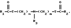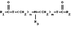 (57) Реферат: Изобретение относится к технологии получения смягчителей тканей и может быть использовано при их стирке и полоскании. Стабильная композиция смягчителя ткани содержит 3-40 мас.% смеси амидоамина и способного разлагаться биологическим способом четвертичного аммониевого соединения сложного жирного эфира. Включает также сложный жирный эфир одноатомных или многоатомных спиртов, содержащих углеводородную цепь с 1-24 атомами углерода, и моно- или поликарбоновых кислот, а также водный носитель, включающий электролит в количестве, которое предотвращает желатинирование композиции. Композиция стабильна, сохраняет стабильную вязкость в отсутствие масляной отдушки. 2 с. и 24 з.п. ф-лы, 6 табл. Изобретение относится к композициям смягчителей тканей и водорастворимым концентратам для добавления в цикле полоскания в процессе стирки тканей. Водные композиции, включающие четвертичные аммониевые соли или производные имидазолиния, содержащие по меньшей мере одну гидрокарбильную группу с длинной углеродной цепью, обычно используются для придания тканям преимущественной мягкости, когда используются в прачечных в операции полоскания. Имеется большое количество патентов, относящихся к соединениям и композициям этих типов. Однако позднее, принимая во внимание важность безопасности для окружающей среды (например, способность разлагаться биологическим способом) смягчителей на основе четвертичных соединений, а также ввиду ограничения количества таких катионных соединений, которые могут стабильно вводиться в более удобные для применения жидкие рецептуры, сделано много предложений по частичной или полной замене общеизвестных “четвертичных” смягчителей тканей, примерами которых являются диметилдистеарил (или дижирный) хлорид аммония и различные соединения имидазолиния. Описаны амидоамины или сложные эфиры аминов сложных эфиров, которые являются более предпочтительными в качестве смягчителей тканей, так как они более легко подвергаются биологическому разложению. Соединения представляют собой органические или неорганические соли соединений общей формулы I ![]() где R1 и R2 независимо представляют собой C12-C20алкил или алкенил; R3 представляет собой (CH2CH2O)pH, СН3 или Н; Т представляет собой O или NH; n и m каждый независимо представляет собой целое число от 1 до 5; р – целое число от 1 до 10. Однако применение этих соединений в сочетании с жирными эмульгаторами в концентрированных водных дисперсиях или эмульсиях смягчителей тканей в количествах свыше примерно 10-11% (маc.) амина может вызывать заметное повышение вязкости продукта (> 2500 мПа с) даже в присутствии электролитов (например, CaCl2) или растворителей, так что продукт не способен легко выливаться из контейнера, в который он расфасован.
