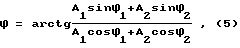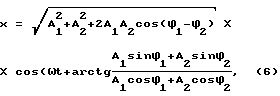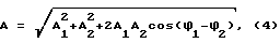Определив значения составляющих амплитуд Ai и их фаз i, по формулам (2) (3), нужно вычислить результизирующую амплитуду A и фазу ее изменений.