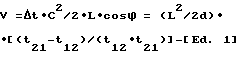 Способ измерения скорости потока, использующий разность во времени прохождения ультразвука, предварительно вводит заданную константу L2/2d, и вычисляет разность во времени между временем t12 и временем t21, причем время t12 измеряется, когда ультразвуковой луч испускается в направлении скорости потока, а время t21 измеряется, когда ультразвуковой луч испускается в направлении, противоположном направлению скорости потока для времени tl2. Такой способ измерения скорости потока описан в патенте США 5531124 (2 июля, 1996) и в патенте Японии 2676321 (26 июля, 1998).