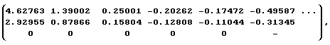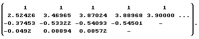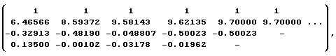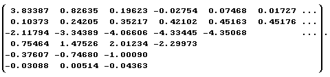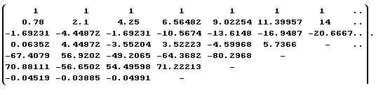 По окончании процедуры стационаризации входного и выходного сигналов находится модель идентифицируемого объекта в идентификаторе непрерывной дроби. Для этого на основании (1) расчетным путем определяется идентифицирующая матрица: