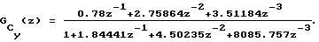 Заменив ум(k)= yм(k+l)-yм(k), запишем ДПФ объекта и прогнозирующую модель в виде (4)![]() и ум(k)=0.63306x(k-1)+yм(k-1) соответственно. Таким образом, по предлагаемому способу восстановлена прогнозирующая модель объекта, которая по структуре и параметрам совпадает (с точностью до погрешностей вычислений) с исходной моделью (12), что в конечном итоге позволяет получать достоверный прогноз значений выходного сигнала объекта. Пример 2. Объект идентификации – сильфонный датчик давления жидкости с непрерывной передаточной функцией ![]() на вход которого подается давление, дискретная модель которого имеет вид x(k)=2a(k)-0.59101 a(k-l)+ 0.59101 x(k-l)-0.08208 x(k-2), где a(k) – белый шум с математическим ожиданием Ма=0 и дисперсией Dа=1, а на выходе имеется случайный сигнал, разностное уравнение которого задается формулой y(k)=0,01958x(k-1)+0,012x(k-2)+ +1,73125y(k-1)-0,78818y(k-2) (13) На основании дискретных моделей вход-выходных сигналов моделировались реализации x(k t) и y(k t) объемом N=500 с шагом дискретизации t=0.5с., а затем по ним вычислялись значения структурных функций Cx(k t) и Cy(k t). На фиг.5 непрерывной линией изображена структурная функция Cx(k t), а пунктиром ее вид после сглаживания фильтром низким частот. Затем определялась матрица вида (7)![]() в которой 4-ую строку можно считать нулевой. На основании элементов первого столбца матрицы можно записать модель структурной функции входного сигнала в форме ДПФ объекта-преобразователя ![]() ДПФ объекта-преобразователя имеет один нуль – zн=-0.08554 и два полюса – z1 n= 03619 и z2 n=-0.31962, на основании значений которых можно сделать вывод об устойчивости объекта-преобразователя и, следовательно, о стационарности входного сигнала. На фиг.6 пунктиром изображена сглаженная с помощью фильтра низких частот структурная функция Сy(k t). В соответствии с модифицированным алгоритмом В. Висковатова произведем децимацию через четыре отсчета сглаженных значений Сy(k t) и определим матрицу (7)![]() а затем модель структурной функции выходного сигнала в форме ДПФ объекта-преобразователя ![]() ДПФ объекта-преобразователя имеет 2 нуля – z1 н=-1.49187 и z2 н-0.18444; 3 полюса – z1 n=-0.64805 и z2,3 n=0.44355 i0.74806, на основании которых можно сделать вывод об устойчивости объекта-преобразователя и о стационарности выходного сигнала.