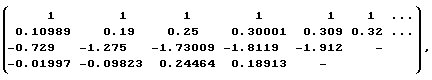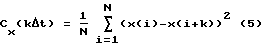 t), а пунктиром ее вид после сглаживания фильтром низких частот. Применим модифицированный алгоритм В. Висковатова для аппроксимации непрерывной дробью модели структурной функции входного сигнала. Для этого определим матрицу (7) с учетом того, что в нулевой строке необходимо сделать сдвиг влево на один элемент, обусловленный начальным значениемCx(0)=0,